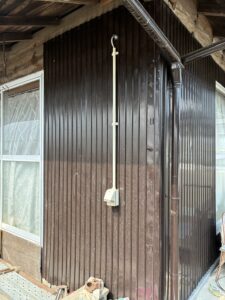 普通、屋外コンセントというと地面に近い低い位置に付けることが多いです。でも、お客様はご高齢の方。低い位置にあると、抜き差しのたびに深く腰を曲げなきゃいけませんよね。毎日の農作業でただでさえ腰を使われているのに、電気の抜き差しで負担をかけたくないなと思ったんです。